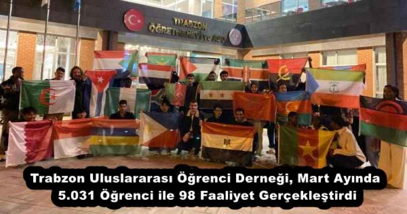 Mart ayında dernek, öğrencilere yönelik 42 eğitim faaliyeti, 6 öğrenci faaliyeti ve 40 sosyal ve kültürel etkinlik düzenledi. Bu faaliyetler, Trabzon’daki uluslararası öğrencilerin kültürel entegrasyonlarını desteklerken, aynı zamanda eğitimsel gelişimlerini de katkı sağladı.