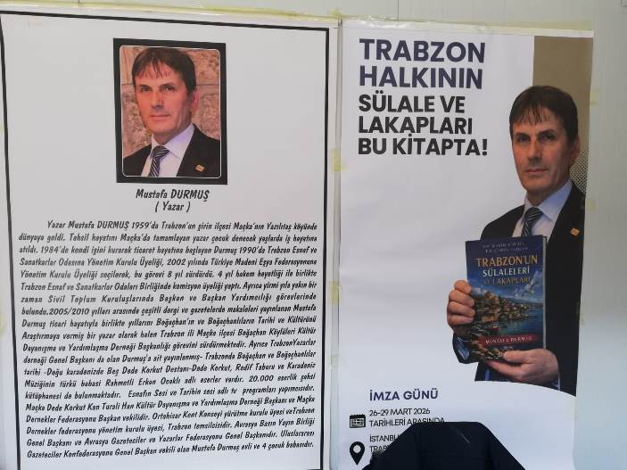 Araştırmacı yazar Mustafa Durmuş’un 13 yıllık titiz çalışmasıyla kaleme aldığı “Bir Şehrin Kimliği Bir Şehrin Hafızası: Trabzon’un Sülaleleri ve Lakapları” adlı 560 sayfalık eser, düzenlenen imza günleriyle büyük ilgi gördü.