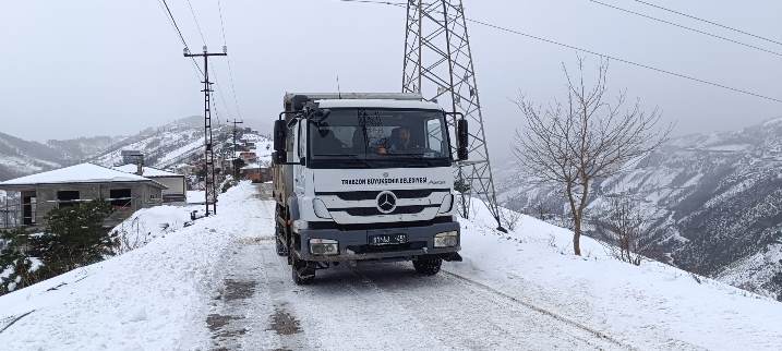 Trabzon’da 20 Şubat’tan bu yana etkili olan kar yağışı, özellikle yüksek kesimlerde hayatı olumsuz etkiledi. Vatandaşların mağduriyet yaşamaması için karla mücadelede seferberlik ilan eden Büyükşehir Belediyesi’nden yapılan açıklamada “18 ilçemizin tamamında, ilçe belediyeleri ile koordineli şekilde başlattığımız karla mücadele çalışmaları, 24 saat mesai esasıyla devam etmektedir. 18 ilçemizde vatandaşlarımızın herhangi bir mağduriyet yaşamaması için ekiplerimiz büyük bir gayret ve özveriyle görev yapıyor. Bugün (24 Şubat) saat 16.30 itibariyle 11 ilçemizde 132 mahalle yolumuz kapalı bulunmakta ve yol açma çalışmalarımız devam etmektedir” denildi. Açıklamada, vatandaşların don olayı ve buzlanmaya karşı dikkatli ve tedbirli olması uyarısında da bulunuldu.