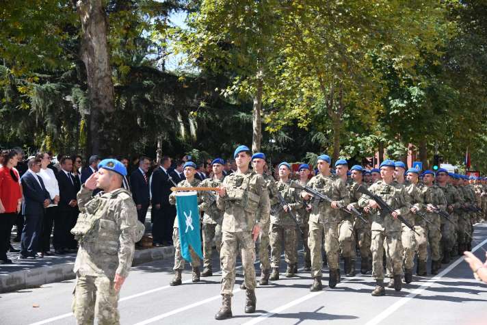 Türk milletinin, bağımsızlığını dünyaya ilan ettiği şanlı mücadelenin simgesi olan 30 Ağustos Zafer Bayramı, tüm yurtta olduğu gibi Trabzon’da da coşkulu bir katılımla kutlandı. Hükümet Konağı önündeki Atatürk Anıtı’na çelenk sunumuyla başlayan törene, Vali Aziz Yıldırım, milletvekilleri, Büyükşehir Belediye Başkanı Ahmet Metin Genç, askeri erkan, protokol üyeleri, Ortahisar Belediye Başkanı Ahmet Kaya, siyasi partilerin il başkanları, sivil toplum kuruluşu temsilcileri ve vatandaşlar katıldı. Milli mücadeledeki kahramanlıkları nedeniyle TBMM kararıyla Trabzon’un evlatlarına verilen ve 101 yıl sonra şehre getirilen İstiklal Madalyası da törende sergilendi. Askerler, gaziler ve öğrencilerin geçit töreni ilgiyle izlenirken, halkoyunları gösterileri de büyük alkış aldı.