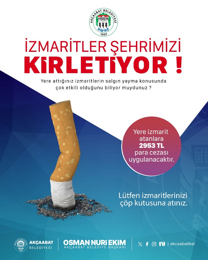 Akçaabat Belediye Başkanı Osman Nuri Ekim, konuya ilişkin yaptığı açıklamada çevre temizliğinin belediyenin olduğu kadar tüm vatandaşların ortak sorumluluğu olduğunu vurguladı: “Akçaabat bizim ortak yaşam alanımız, bizim evimizdir. Kimse kendi evinin içine izmarit veya çöp atmıyorsa, şehrimizin sokaklarına da atmamalıdır. Yere atılan her izmarit görüntü kirliliği oluşturuyor, çevreye zarar veriyor ve özellikle sıcak havalarda ciddi bir yangın riski barındırıyor.”