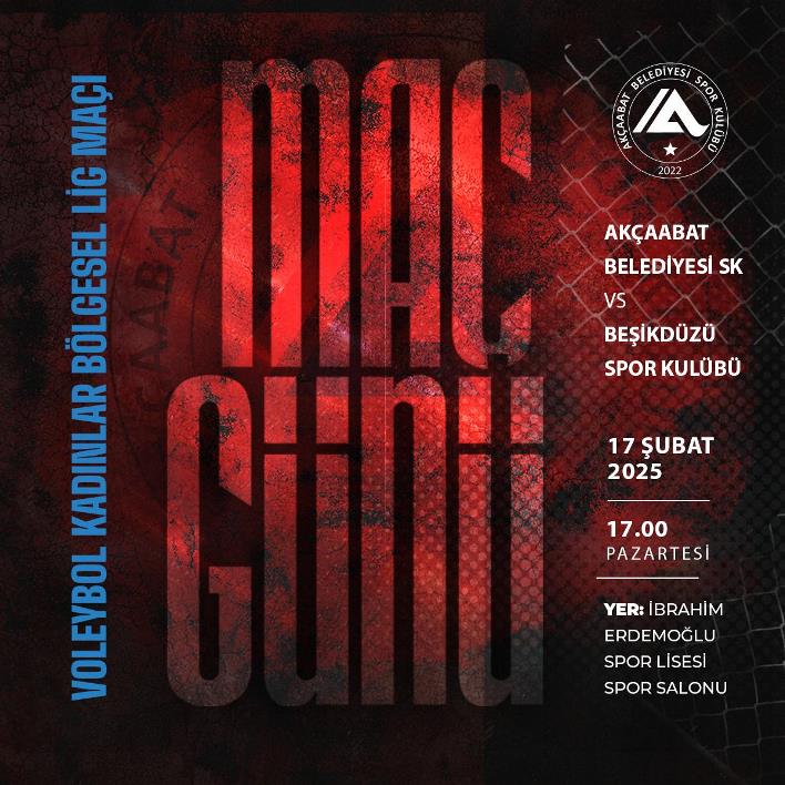 Akçaabat Belediyesi Spor Kulübü ile Beşikdüzü Spor Kulübü, Kadınlar Bölgesel Lig müsabakasında karşı karşıya gelecek. Saat 17.00’de başlayacak olan bu önemli mücadele, İbrahim Erdemoğlu Spor Lisesi Spor Salonu’nda oynanacak.