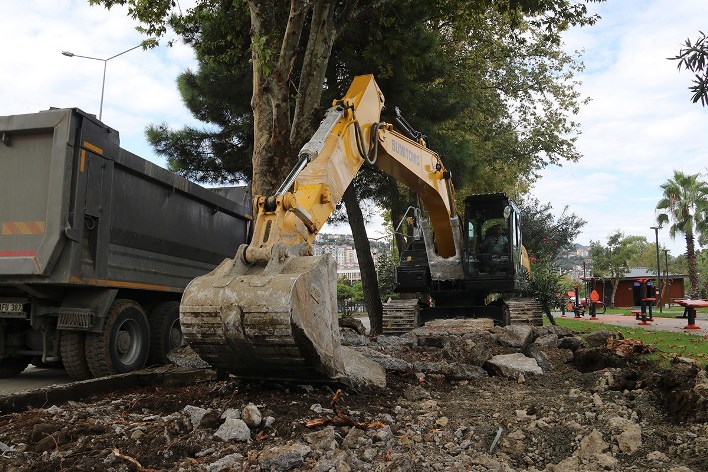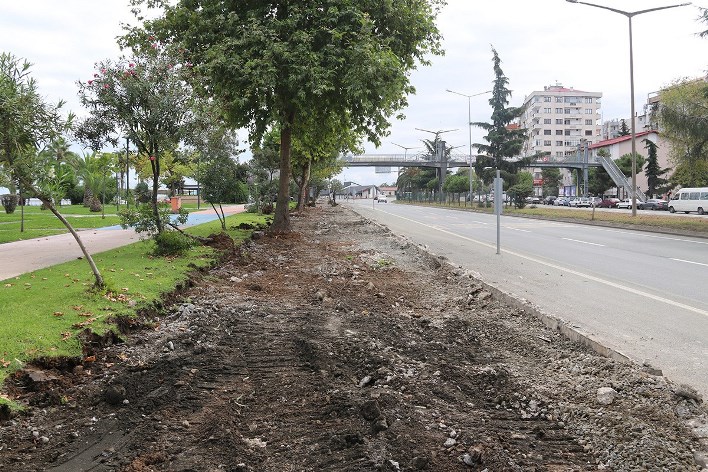 Akçaabat’ta Karayolu güzergâhına kadar uzanan çift yönlü kaldırımların yenilenmesi çalışmalarına başlandı.