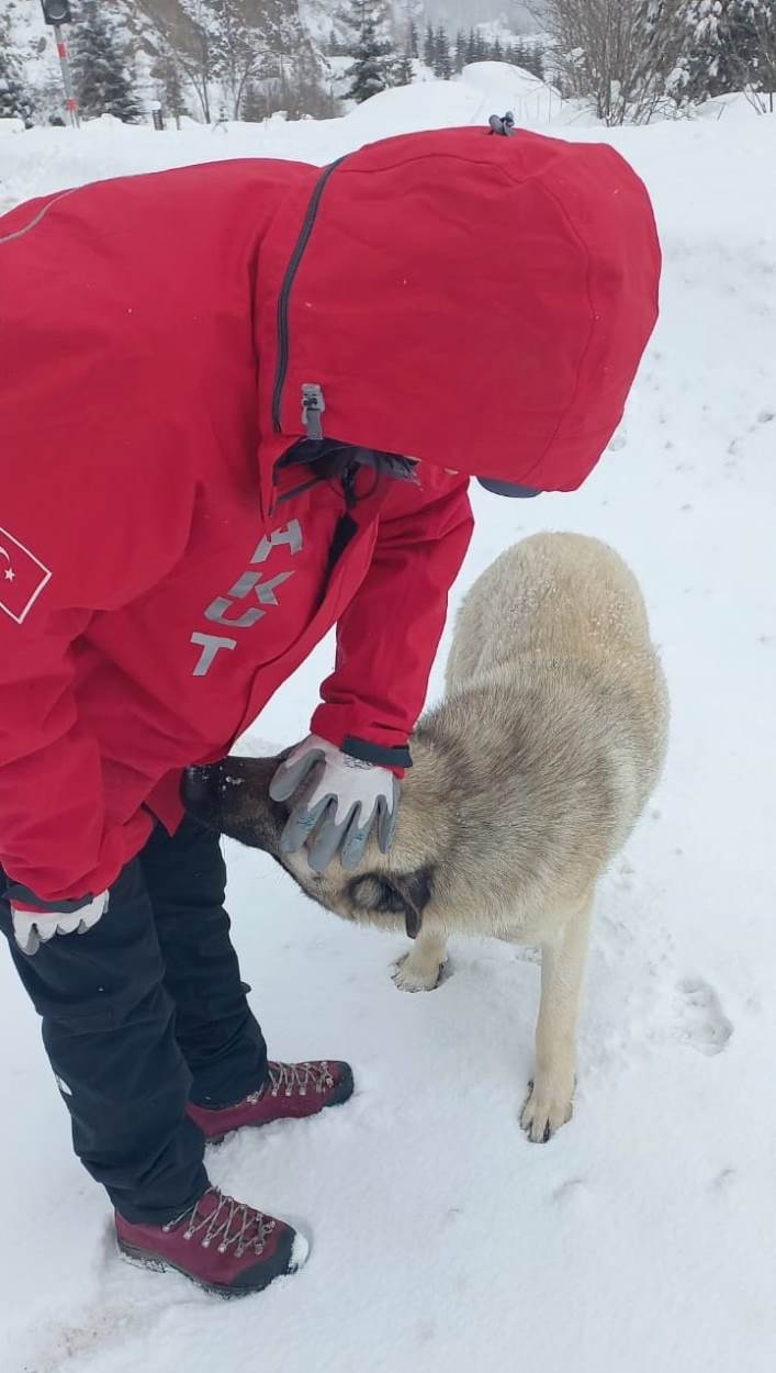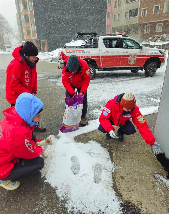 AKUT Arama Kurtarma Derneği Trabzon ekibi gönüllüleri, son zamanlarda bölgede süren ağır kış şartlarında yiyecek bulmakta zorluk çeken sokak hayvanlarına yardım eli uzattı.