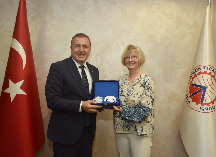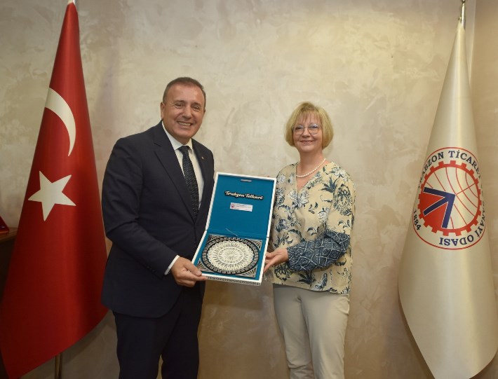 TTSO Başkanı Erkut Çelebi, Büyükelçi Sorg’u ağırlamaktan memnuniyet duyduklarını belirterek, “Ülkemizin en eski ticaret ve sanayi odalarından biri olan TTSO bünyesinde 13 bine yakın firma bulunuyor ve bu firmalar 150’den fazla sektörde faaliyet gösteriyor. Tarımda fındık, çay, somon ağırlıklı su ürünleri yetiştiriciliği başı çekiyor. 60 bin ton somon üretiyoruz ve ihracat 180 milyon doların üzerine çıktı. Japonya, Rusya, bazı Asya ve AB ülkelerine satıyoruz. Levrek balığının en büyük müşterisi ise ABD. Trabzon’da 5 adet OSB var. 3 tanesi dolu. 2’sinin altyapı çalışmaları devam ediyor. Sanayi ürünleri olarak da döküm, bakır, iş ayakkabısı, mobilya, fındık, savunma sanayi, tekstil, balık ve çayla ilgili üst düzey teknoloji ile üretim yapan entegre tesisler bulunuyor. İnşaat sektörünün her alanında üretim yapan, dünyanın her bölgesinde iş yapan birçok firmamız var. Ayrıca köklü ticaret geçmişimiz bulunuyor. Turizmde son yıllarda ön plana çıkan ve yılda 1 milyar doları aşan bir turizm girdisi olan bir kentiz. Avrupalı turistleri de geçmişte olduğu gibi yine şehrimize getirmeyi amaçlıyoruz. Sağlık turizmi konusunda önemli bir proje yürütüyoruz. Almanya da hedef ülkelerimiz arasında bulunuyor. Almanya’daki teknolojik altyapı daha iyi ve bu konuda iş birliği yapabiliriz. Tarım ürünlerimizin pazarlanması konusunda ortak çalışma yapmak istiyoruz. Sağlık ve kültür turizminde Avrupa’dan ve Almanya’dan turist getirmek istiyoruz. Yaşlı bakım hizmetleri konusunda çeşitli çalışmalar yapılabilir. Ayrıca Almanya’da çeşitli nedenlerle devredilmek istenen, kapanmak üzere olan birçok firmaya Türk iş insanları olarak talip olabiliriz ve bu konuda elçilikle ortak çalışma yapılabilir” dedi.