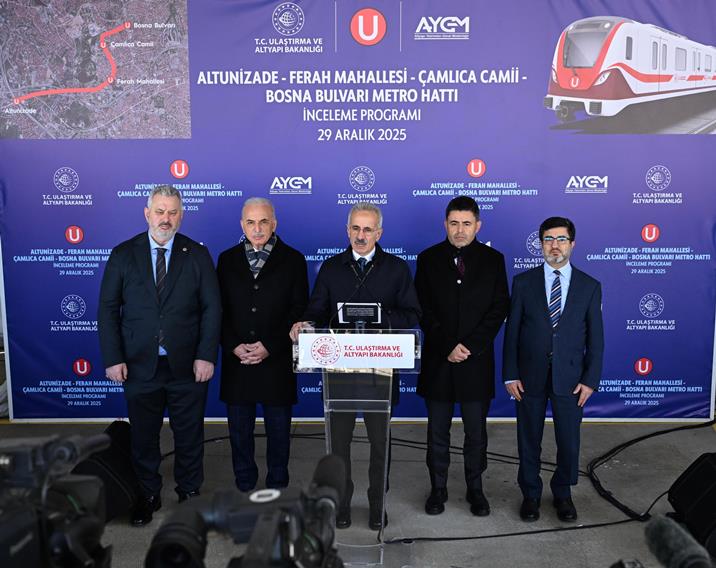 İstanbul’un yoğun trafiğinin artık yüzeyden çözmenin mümkün olmadığını anlatan Bakan Uraloğlu, “Bu dev metropolün hızla artan nüfusu ve yoğun ekonomik hareketliliği göz önüne alındığında, yer altı ulaşım ağlarına yönelik yatırımların kaçınılmaz olduğu ortadadır. Yapılan detaylı çalışmalar ve projeksiyonlar, İstanbul’un toplamda 1004 kilometre raylı sistem hattına ihtiyacı olduğunu ortaya koyuyor. Bu da yaklaşık 600 kilometre daha yeni hatta ihtiyaç var demek. Bu gerçekten hareketle Ulaştırma ve Altyapı Bakanlığı olarak bizler her zaman İstanbul’un ve İstanbulluların yanında yer alıyoruz. Vatandaşlarımızın beklentilerine en iyi şekilde yanıt veren, hızlı, güvenli, emniyetli ve üst düzey konfor sunan bir ulaşım ağı oluşturana dek durmadan çalışacağız.” şeklinde konuştu.