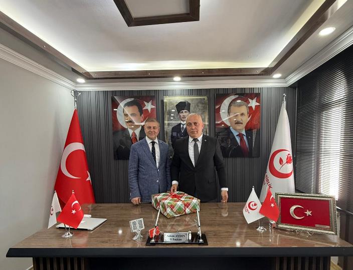 ADEM AYDIN ZİYARETTEN DUYDUĞU MEMNUNİYETİ DİLE GETİRİRKEN, HÜSEYİN CAHİT KÖSE; RAHMETLİ MUHSİN YAZICIOĞLU’NUN DAVA VE YOL ARKADAŞLARI OLARAK BİZİM GÖNLÜMÜZDE AYRI BİR YERİNİZ VAR DEDİ. SAMİMİ BİR ORTAMDA GERÇEKLEŞEN ZİYARET SONRASI İKİ BAŞKAN DA BİRBİRLERİNE BAŞARILAR DİLEDİ.
