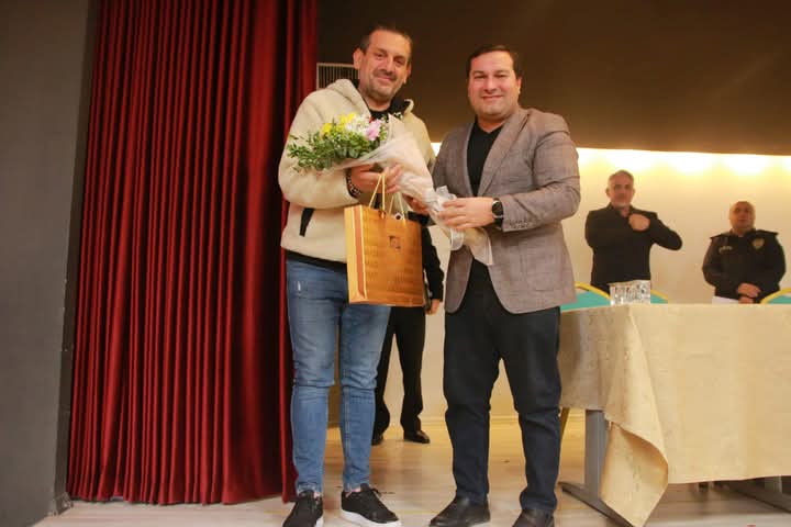 Toplantı sonunda Kaymakam Ferhat Altay’a okullara yaptıkları çalışmalardan dolayı Okul Aile Birliği tarafından çiçek takdim edildi.