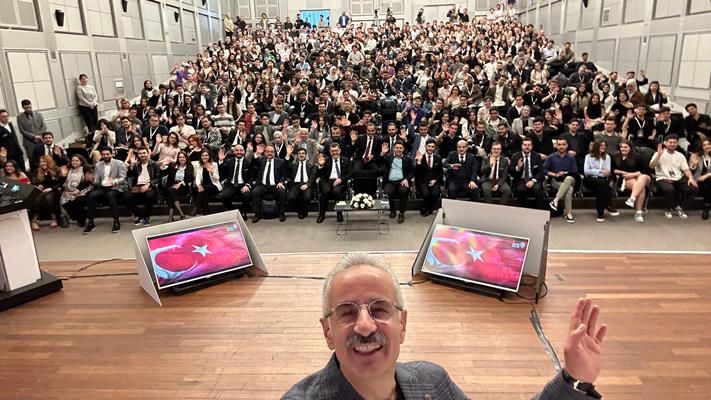 Bakan Uraloğlu, etkinlik kapsamında yaptığı sunumda Türkiye’nin mega projeleri ile ulaştırma ve haberleşme yatırımlarını anlattı. Geleceğin teminatının gençler olduğunu söyleyen Bakan Uraloğlu, “Sizin buradan mezun olup belirli görevlere geldiğiniz zaman ülkemize, coğrafyamıza ve bütün dünyaya çok güzel hizmetler yapacağınıza canı gönülden inanıyorum.” ifadelerini kullandı.