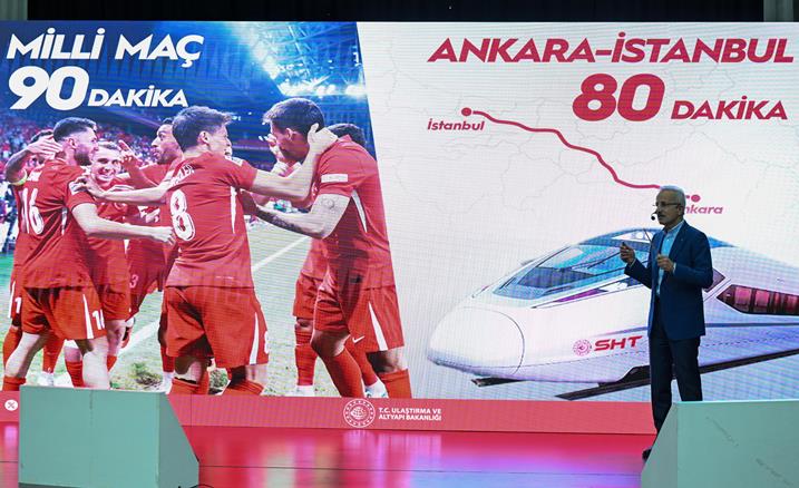 Ankara-İstanbul arasında da yeni bir demiryolu hattı düşündüklerini belirten Bakan Uraloğlu, Ankara-İstanbul arasında süper hızlı trenin saatte 350 kilometre hızla gideceğini ve seyahat süresinin ise 80 dakika süreceğini belirtti