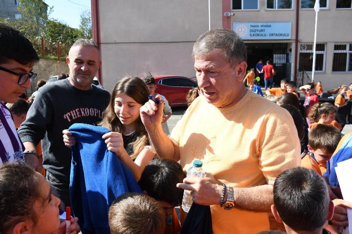 Çocuklara futbolu sevdirmek için bir araya geldiklerini belirten Galatasaray’ın eski futbolcusu Tanju Çolak ise şu ifadeleri kullandı: “Necati kardeşimizin organizasyonuyla Düzyurt İlköğretim Okulu’nu ziyaret ettik. Çocuklar bizim en önemli, en özel varlıklarımız. Yarınları onlara bırakacağız. O yüzden gelelim buraya, kucaklaşalım, sevgimizi verelim, saygımızı gösterelim istedik. Aynı havayı soluyalım diye böyle bir güzellik yaptık. Herkesi mutlu etmeye çalışıyoruz. En büyük Trabzon, başka büyük yok! Önemli olan bu güzel sevgiye layık olmak. İyi ki varsınız.”