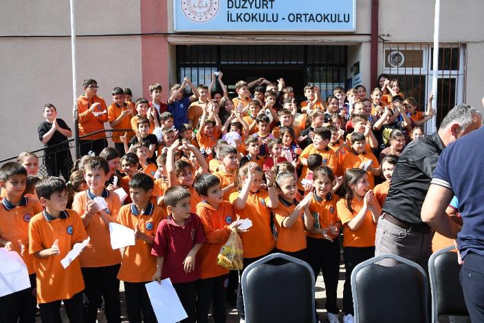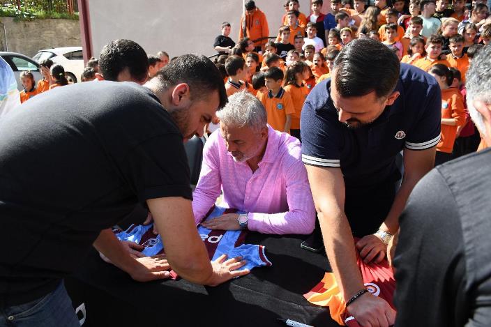 Kazaz Grup Yönetim Kurulu Başkanı ve aynı zamanda eski hakem Necati Kazaz önderliğinde gerçekleştirilen ziyarette, Trabzonspor’un efsanesi Hami Mandıralı ve Türk futbolunun unutulmaz golcüsü Tanju Çolak, öğrencilerle bir araya geldi. Ziyarette Okul Müdürü Mehmet Kara ve Düzyurt Muhtarı Lokman Mengüç de yer aldı. Kazaz Grup, okula forma hediye etti. Efsaneler, öğrencilere imza verirken bol bol fotoğraf çektirdiler.