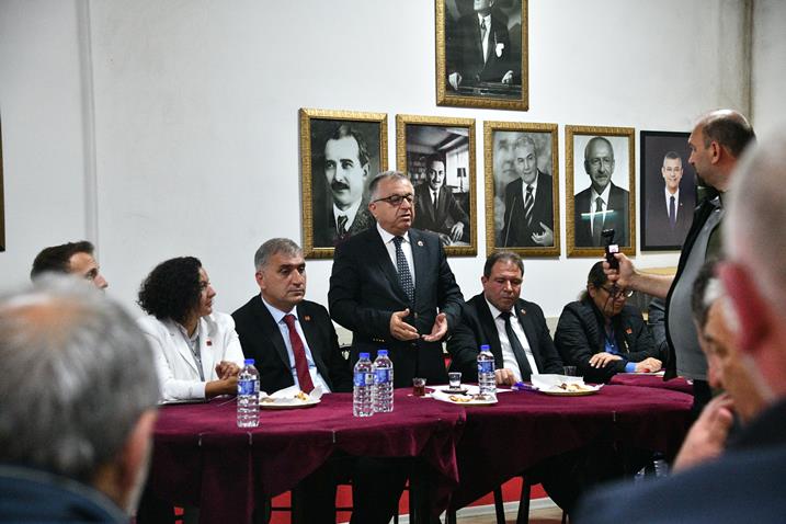 Aydınlıkevler ve Yeşiltepe mahallelerinden toplantılara başladıklarını ifade eden CHP Ortahisar İlçe Başkanı Haluk Batmaz, ilçe teşkilatlarının çalışmalarını anlattı. Üye çalışmalarına hız verdiklerini belirten Batmaz, “Göreve geldiğimizde 2 bin 600 üyemiz vardı, bugün 5 bin 500 üyemiz var. Ekrem Başkanımızın Cumhurbaşkanlığı adaylığı ön seçiminde Ortahisarımızda 30 bin kişinin oyunu aldık. Diploma iptali ve akabinde Ekrem Başkanımıza ve yol arkadaşlarımıza yönelik operasyonlar sonrasında günlerce sokakta protestolarımızı sürdürdük. Protestolarımızı ‘Adayımızı yanımızda, sandığımızı önümüzde istiyoruz’ diyerek imza kampanyası ile birlikte devam ettiriyoruz. Şu ana kadar Ortahisarımızda 65 bin imzaya ulaşmış durumdayız. Yaşanan bu hukuk garabeti hepimizi derinden sarsmış bir durumda. İki hafta önce Silivri’deydim. Cumhurbaşkanı adayımız Ekrem İmamoğlu’nu, Murat Çalık Başkanımızı ziyaret ettim. Umutları, dirençleri yüksek, bize onlar moral verdiler. ‘Bugünler geçecek, bizi destekleyen, bizi seven arkadaşlarımızın yüzünü öne eğecek hiçbir kusurumuz yok. Alnımız ak, başımız dik, milletimizin huzuruna çıkacağız’ dediler. Bizler de onları oradan çıkarabilmek için mücadele içerisindeyiz” dedi.