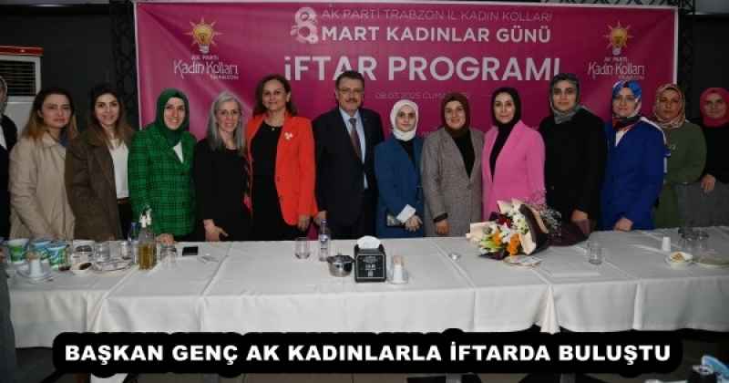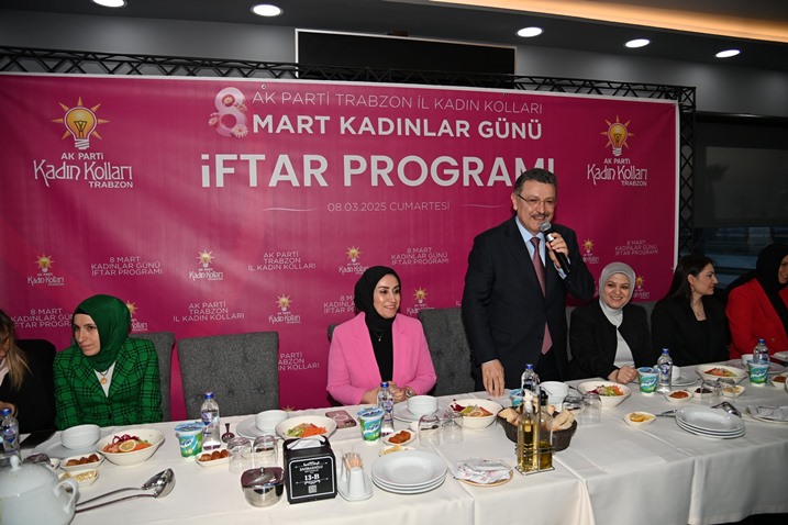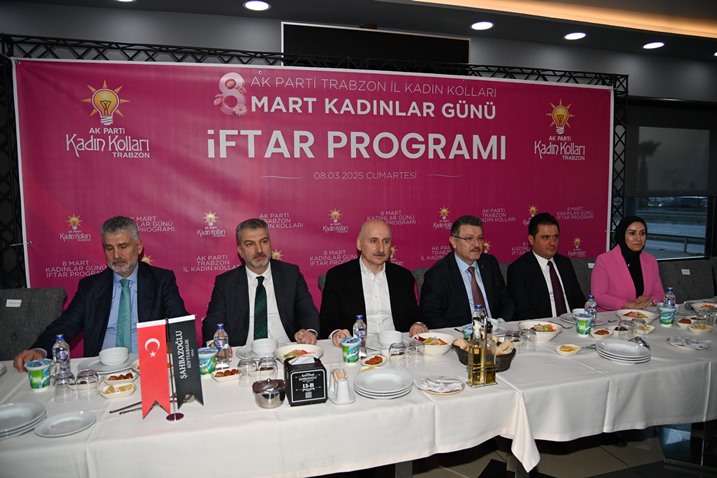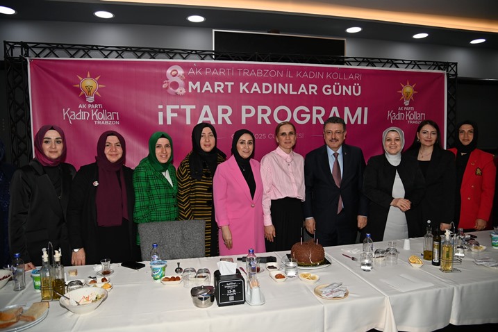 Trabzon Büyükşehir Belediye Başkanı Ahmet Metin Genç ve eşi Arzu Genç, 8 Mart Dünya Kadınlar Günü dolayısıyla AK Parti Trabzon Kadın Kolları tarafından düzenlenen iftar programına katıldı. Programa Başkan Genç’in yanı sıra önceki dönem Ulaştırma ve Altyapı Bakanı, TBMM Bayındırlık, İmar, Ulaştırma ve Turizm Komisyonu Başkanı ve Trabzon Milletvekili Adil Karaismailoğlu, AK Parti Trabzon Milletvekili Yılmaz Büyükaydın, AK Parti Trabzon İl Başkanı Sezgin Mumcu, AK Parti Kadın Kolları Başkanı Ayfer Cihan, AK Parti Yerel Yönetimler Başkan Yardımcısı Ayşe Sula Köseoğlu, AK Parti Ortahisar İlçe Başkanı Seyit Hisoğlu, meclis üyeleri, kadın muhtarlar, STK ve siyasi parti temsilcileri ile çok sayıda kişi katıldı.