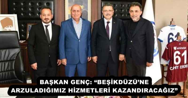 Beşikdüzü Belediyesi’ni ziyaret eden Başkan Genç, Belediye Başkanı Cahit Erdem ile bir araya geldi. Gerçekleştirilen görüşmede, ilçenin mevcut durumu, vatandaşlardan gelen talepler ve çözüm bekleyen sorunlar ele alındı. Beşikdüzü Kaymakamı Ferhat Vardar tarafından ağırlanan Başkan Genç, ardından gerçekleştirdiği esnaf gezisi ile bölge halkıyla bir araya geldi.