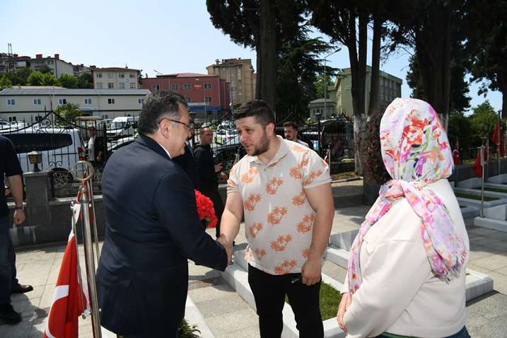 Trabzon Büyükşehir Belediye Başkanı Ahmet Metin Genç, Kurban Bayramı öncesinde Sülüklü Mezarlığı’nda bulunan şehitliği ziyaret etti. Vatan uğruna canlarını feda eden kahraman şehitleri dualarla anan Başkan Genç, şehit mezarlarına karanfil bıraktı. Trabzon Valisi Aziz Yıldırım’ın yanı sıra kent protokolünün de katıldığı programda Kur’an-ı Kerim tilaveti eşliğinde dualar edildi.