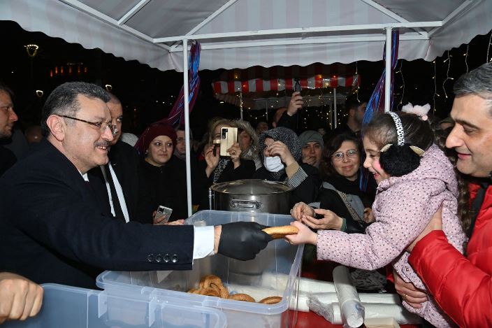Kalandar’ın yaşatılmasının çok önemli olduğunu belirten Büyükşehir Belediye Başkanı Ahmet Metin Genç, “Kadim kültürlerin ve geleneklerin beşiği olan Trabzon’da bir Rumi takvim geleneği olan Kalandar’ın yaşatılması bizim için çok kıymetli. Miladi takvime geçişten önce Rumi takvime göre 13 Ocak akşamı Rumi Yılbaşı olarak kutlanırdı. Günümüzde bu gelenek, somut olmayan kültürel miraslarımız arasında yerini aldı ve ilçelerimizde hala kutlanmaya devam ediyor. Bu yıl, Ticaret Odamız ve TOBB Trabzon Kadın Girişimciler Kurulu Başkanı Ahsen Hanım’ın öncülüğünde, Avrupa Birliği desteğiyle bu etkinliğe katkı sunduk. Burada gördüğümüz şenlik havası Trabzon’un kültürel zenginliğini yansıtıyor. Büyükşehir Belediyesi olarak yaz aylarında dünyanın en büyük horon halkasını kurmayı hedeflediğimiz uluslararası bir horon festivali düzenleyeceğiz. Bu vesileyle, projenin tüm paydaşlarına ve şehrimizin sanat ve kültürüne katkı sunan herkese teşekkür ediyorum. Şehrimize hizmet etmeyi bir lütuf değil, vazife olarak görüyoruz” ifadelerini kullandı. Başkan Genç, etkinlikte vatandaşlara simit ikramı yaptı.