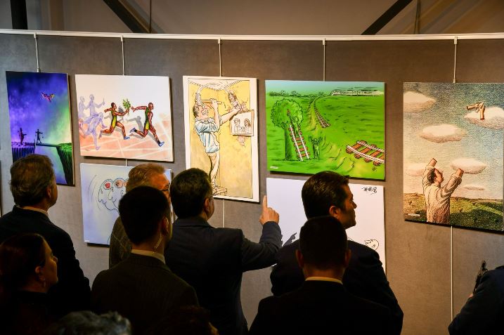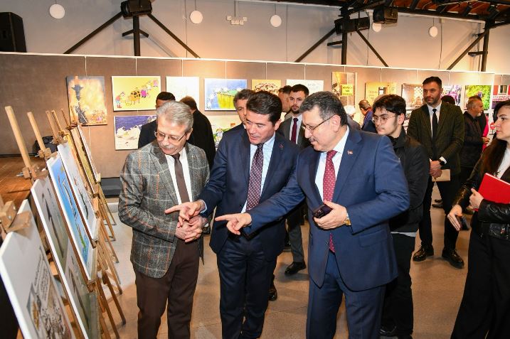 Trabzon Büyükşehir Belediye Başkanı Ahmet Metin Genç, Sanatevi’nde düzenlenen 11. Uluslararası Görsel Mizahi Yapıtlar Sergisi’ne katıldı. 60 eserin sergilendiği etkinlikte, Ortahisar Belediye Başkanı Ahmet Kaya, Sanatevi Başkanı Adnan Taç, çok sayıda sanatçı ve sanatsever yer aldı. Trabzon’un köklü tarihine ve sanatla yoğrulmuş kültürel mirasına vurgu yapan Başkan Genç, “Tarih, kültür ve sanat şehri olan Trabzon’un bir evladı olmaktan gurur duyuyorum. Her şehrimizin kendine has güzellikleri var ama Trabzon, gerçekten birçok ülke vatandaşı tarafından da tercih edilen, ayrıcalıklı bir şehir. Bizim alametifarikamız, tarihsel mirasımız ve bu mirasın içinde sanatla bütünleşmiş bir şehir olmamızdır. Bugün itibarıyla şehrimizin literatürdeki yerini biraz daha ileri taşıyarak ‘Mizahın Başkenti Trabzon’dur’ diyelim ve bunu tescilleyelim” dedi.