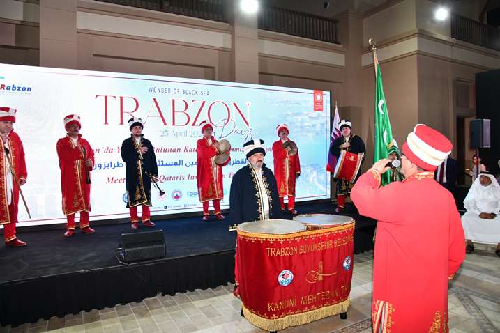 Türkiye Cumhuriyeti Doha Büyükelçisi Dr. Mustafa Göksu, “Bizim için büyüklük sadece sınırlarımızla değil, gönül coğrafyamızla ölçülür. Bayrağımızı gören herkes, dünyanın neresinde olursa olsun farklı bir heyecan duymaktadır. Bu da bizlere daha büyük bir sorumluluk yüklemektedir. Bu nedenle, kendimizi en iyi şekilde tanıtmalı, evimize gelen misafirlere milletimizi en güzel şekilde temsil etmeliyiz. Bugün burada, Trabzon’un değerli yetkilileri sayın valimizden belediye başkanımıza ve tüm devlet erkanına kadar dediler ki: ‘Yıllardan beri Trabzon’a gelen birçok Katarlı misafirimiz var. Bugün onları dinlemeye, onlar için daha güzel neler yapabiliriz diye konuşmaya geldik.’ Biz de büyükelçilik olarak, Trabzon’da yatırımı olan Katarlı iş insanlarıyla, Katar’da yatırımı bulunan Trabzonlu vatandaşlarımızı ve Katarlı yetkilileri bir araya getirmek amacıyla böyle anlamlı bir gece organize ettik. Bu gecede katkısı olan herkese yürekten teşekkür ediyoruz. Allah hepsinden razı olsun” dedi. Konuşmaların ardından Trabzon Büyükşehir Belediyesi Mehter Takımı sahne aldı. Resepsiyona katılan davetliler, Trabzon mutfağındaki lezzetleri tadarken iki ülke arasında yapılacak çalışmalarla ilgili fikir alışverişinde bulundu.