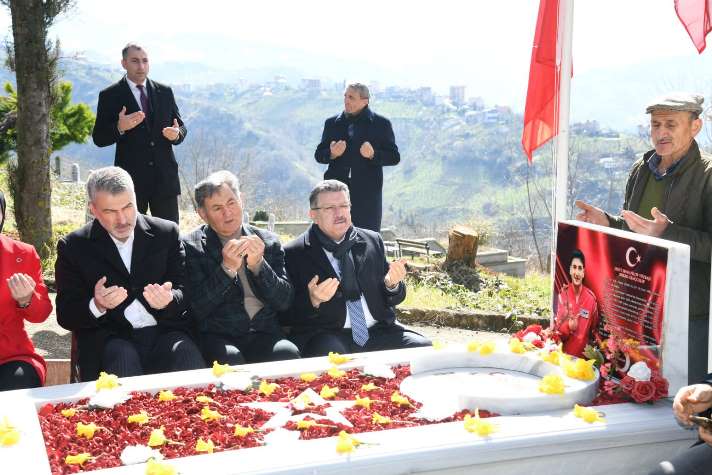 Trabzon Büyükşehir Belediye Başkanı Ahmet Metin Genç, Şehit Hava Pilot Yüzbaşı Burak Gençcelep’in kabrini ve ailesini ziyaret etti.
