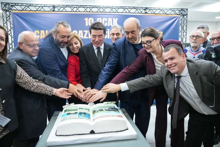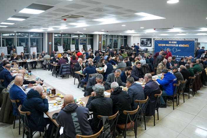 Kent Mutfağı’nda ikram edilen yemeğin ardından Başkan Kaya, basın mensuplarıyla birlikte 10 Ocak Çalışan Gazeteciler Günü’ne özel, üzerinde gazete küpürü baskısı yer alan pastayı kesti.