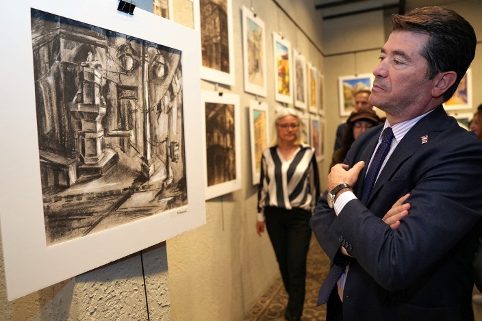 “Ben bir sanatsever olarak, konuşmaya başlamadan önce hocamla derin bir söyleşi yapma olanağı buldum. Bu resimleri, 19 yaşına kadar olan çocuklar çizmiş. Gerçekten büyük bir şaşkınlık yaşadım. İnanılmaz güzel resimler yapmışlar. Müthiş yetenekler… Bizim Trabzon’un çocuklarının da bu resimleri yapanlar arasında olması bizim için gerçekten bir övünç kaynağı. Tabii Trabzon ile ilgili çok şey söylenir, Trabzon’umuzun bir kültür-sanat kenti olduğu başlığı konuşuluyor ama Trabzon’un aslında bir ressamlar kenti olduğu hiç konuşulmuyor. Trabzon, Türkiye’nin en nadide ressamlarını yetiştiren özel bir kent. Trabzon bir ressamlar kenti. Bu özelliği bizim de artık gün yüzüne çıkarmamız lazım. Bu değerli serginin, bunun öncüsü olmasını temenni ediyorum. Gerçekten çok özel resimler burada sergileniyor. Dolayısıyla Trabzon’umuzun bir kültür-sanat kenti yanında, bir ressamlar kenti olduğunu da bütün dünyaya, bütün Türkiye’ye anlatmak adına çok değerli bir sergi. Burada sizlerle buluşmaktan çok mutlu olduğumu ifade ediyorum, çocuklarımızın 23 Nisan Ulusal Egemenlik ve Çocuk Bayramı’nı kutluyorum.”