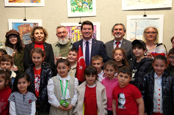 Konuşmalarının ardından Başkan Kaya ve davetliler, sergide yer alan resimleri incelediler. Başkan Kaya’ya, çocukların yaptığı tablolardan biri hediye edildi.
