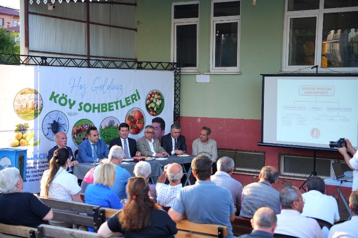 Kendisinin de bir fındık üreticisi olduğunu anlatan Başkan Kaya, “Rahmetli babam döneminde fındıktan elde ettiğimiz gelirle ben okudum, kardeşlerim evlendi. O dönemlerde fındık geliri, bağ bahçeden elde edilen gelirler, bir evi geçindirebiliyordu ama bugün o noktadan çok uzağız. Ancak ne kadar uzak olsak da, yaşamın devam edebilmesi, insanoğlunun ayakta durabilmesi için toprağa muhtacız, tarım yapmak zorundayız. Yeni nesil toprakla, tarımla ilgilenmiyor, bu işlere merak duymuyor ama sabah kahvaltısında sofra kuruluyor. Sofrada zeytin, peynir, yumurta, domates, salatalık var. Hepsinin kaynağı köy, toprak, tarım… Öğlen sofra kuruluyor, fasulye, patates yemeğimiz, pilavımız yoğurdumuz… Yine hepsinin kaynağı köy, tarım, hayvancılık… Keza, akşam aynı. Eğer yaşayacaksak, sağlıklı bireyler olarak yaşamımızı sürdüreceksek tarımla, hayvancılıkla uğraşmak zorundayız” dedi.