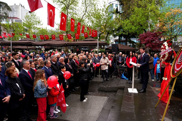 Saygı duruşu, İstiklal Marşı ve anıta çelenk konulmasının ardından konuşan Başkan Kaya, 23 Nisan tarihinin egemenliğin ulusa verildiği çok özel bir tarih olduğunu belirterek bütün yurttaşlar tarafından coşkuyla kutlanması gerektiğini söyledi. Başkan Kaya konuşmasında, Ulusal Egemenlik Bayramında milletin iradesiyle seçilen Ekrem İmamoğlu ve daha birçok ismin Silivri zindanlarında tutsak edilmesinin de kabul edilemez olduğunun altını çizdi.
