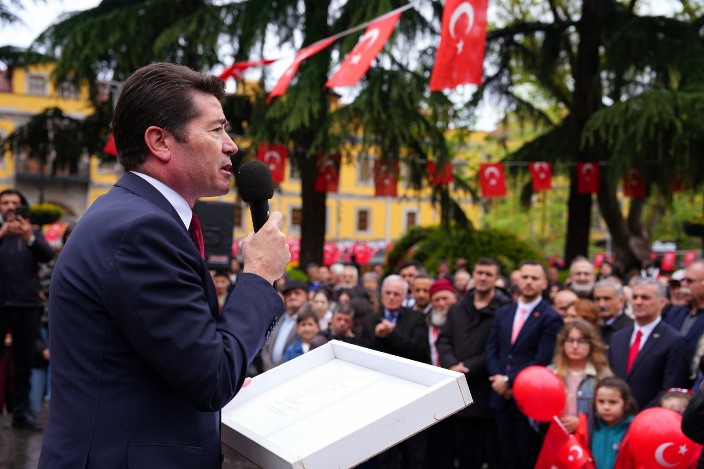 “Kıymetli dostlarım, ‘milli irade’ diyoruz, ‘milletin egemenliği’ diyoruz. Ama bugün, bu topraklarda milletin özgür iradesiyle, milletin egemenliğiyle seçtiği İstanbul Belediye Başkanımız Ekrem İmamoğlu, Silivri zindanlarında tutsaktır. Bunu asla kabul etmiyoruz! Ve yine Trabzon’umuzun evladı, Mehmet Murat Çalık kardeşimiz, milletin iradesiyle seçilmiş Beylikdüzü Belediye Başkanımız Silivri zindanlarında tutsaktır. Ve yine milletin iradesiyle seçilmiş birçok arkadaşımız, Atatürk’ün bizlere verdiği o güçle seçilmiş olmalarına rağmen bugün hepsi özgürlüklerinden alıkonulmuş, haksız, hukuksuz ve adaletsiz bir biçimde Silivri zindanlarında tutulmaktadır. Bunu hiçbir vicdanın kabul etmesi mümkün değildir. Bizler de kabul etmiyoruz ve tüm gücümüzle itiraz ediyoruz! Ekrem İmamoğlu’nu Silivri zindanına atanlar zannediyor ki, Ekrem İmamoğlu şu an Silivri zindanında. Hayır, Ekrem İmamoğlu bu kürsüde konuşuyor. Ekrem İmamoğlu burada. Ekrem İmamoğlu, Türkiye’nin her bir meydanında. Her bir vicdanında Ekrem İmamoğlu bugün! Onu Silivri zindanına atarak, orada tutarak, milletten uzak tutacaklarını ve başlattığı kutsal yürüyüşe engel olacaklarını zannediyorlar. Asla güçleri yetmeyecek! Büyük olan millettir, aslolan millettir. Millet ne diyorsa, o olacaktır!”