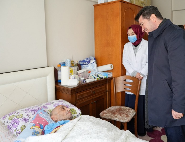 BAŞKAN KAYA, EVDE SAĞLIK HİZMETİ VERİLEN AİLENİN EVİNİ ZİYARET ETTİ
