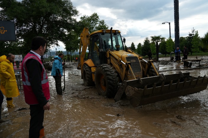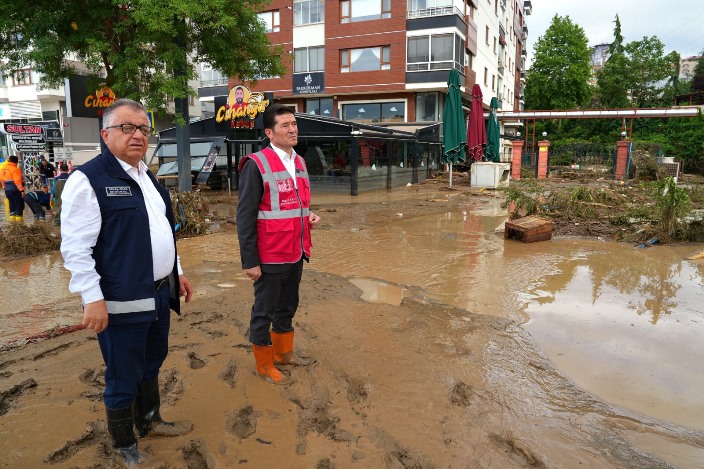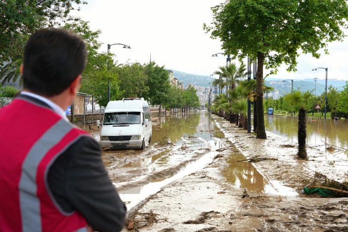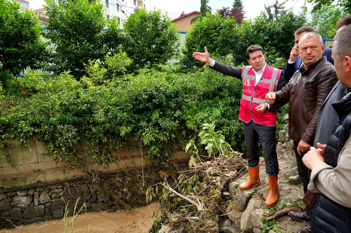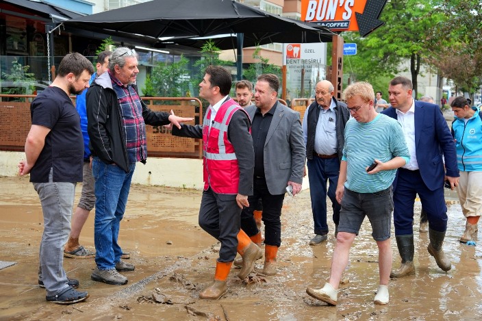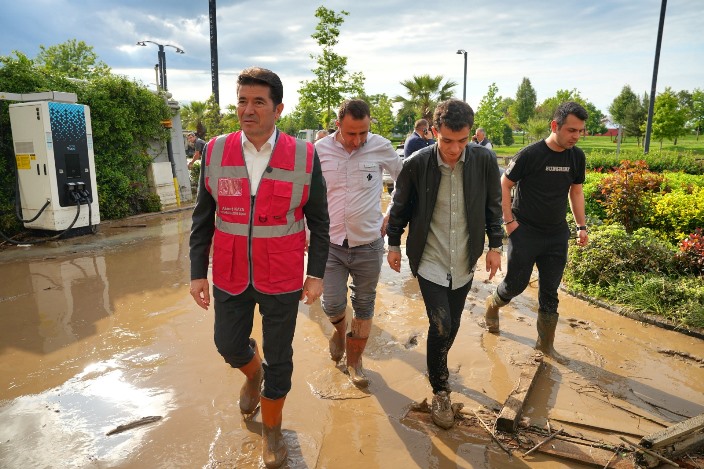 Beşirli ve Toklu mahallerinin sahilinde çok ağır bir tablo olduğunu dile getiren Başkan Kaya, “Çok şiddetli bir yağmur yağdı. Kısa bir süre içinde de metrekareye 63 kg gibi şiddetli bir yağmur yağdı. Allah’tan kısa bir periyodda yağdı, bir 15-20 dakika daha devam etseydi ‘halimiz nice olurdu’ diye düşünmeden edemiyor insan. Bütün hemşerilerimize, şehrimize ‘geçmiş olsun’ dileklerimizi iletiyorum. Biraz önce acı bir haber aldık, bir vatandaşımızın kayıp olduğu bilgisi geldi. Can kaybı olmamasına seviniyorduk ama bu acı haber çok üzücü oldu. Birçok işyerini sular bastı, heyelanlar oluştu. Beşirli sahilindeyiz, bütün dükkânlar hemen hemen sular altında. Çok acı, çok ağır bir manzara var” değerlendirmesinde bulundu.