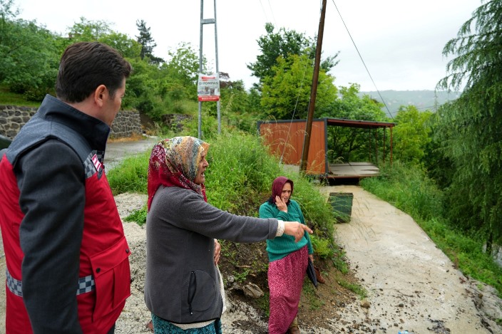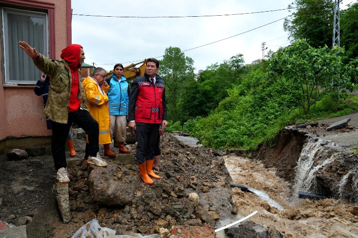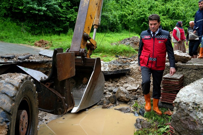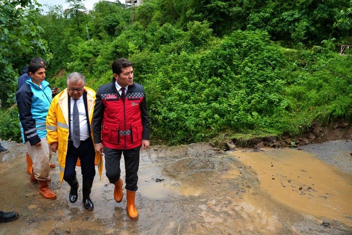 Belediye ekiplerinin çalışmalarını sürdürdüğü Uğurlu, Çamoba, Yenicuma ve Bahçecik mahallelerinde incelemelerde bulunan Başkan Kaya, “Bugün Trabzonumuz maalesef bir sele, heyelana maruz kaldı. Çok ciddi bir afet oluştu. Sabah saat 04.00’dan itibaren çok şiddetli bir yağış meydana geldi. Bu yağışa bağlı olarak birçok mahallemizde su taşkınları, heyelanlar ve çökmeler oluştu. Çamoba mahallemizde, menfezin yetersizliği nedeniyle, suları taşıyamadığı için yol yarıldı. Ekiplerimiz burada, suların binaya ve binanın dışında bulunan hayvanlara zarar vermemesi adına gerekli çalışmayı yaptılar. Bize ulaşan ihbarlara baktığımız zaman 44 mahallemizde ciddi sıkıntılar oluştuğu yönünde bilgiler geldi. Başta Fen İşleri ve Temizlik İşleri Müdürlüğümüz olmak üzere bütün kadrolarımızla sahadayız” dedi.