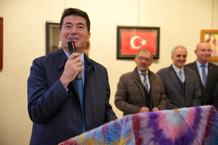 Konuşmanın ardından Başkan Kaya, keçe sanatçısı Zehra Atalay ve davetlilerle birlikte sergiyi gezdi, yapılan çalışmalar hakkında bilgi aldı.