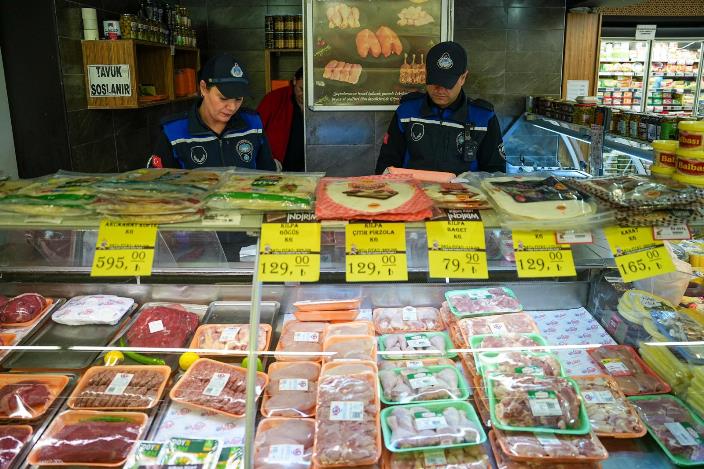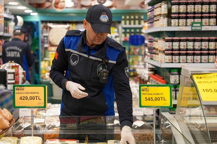 Çukurçayır mahallesindeki market, kafeterya, restoran ve yemek şirketlerinde yapılan denetimlerde hijyen kuralları, ürünlerin sağlık koşullarına uygunluğu, son tüketim tarihleri, mutfak temizliği hassas bir şekilde incelendi.
