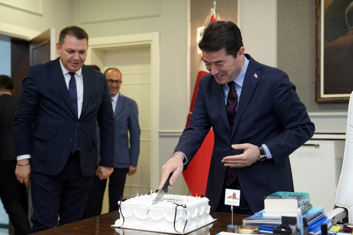 Konuşmanın ardından Başkan Kaya, üzerinde ‘Kaya Gibi Başkan’ yazan pastayı kesti ve kutlamaya katılanlara ikram etti. Başkan Kaya, çalışma arkadaşları ile günün anısına hatıra fotoğrafı çektirdi.