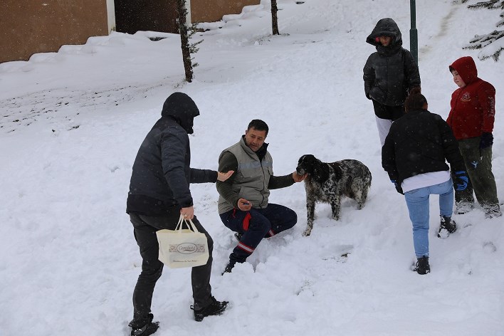 Öğrenciler, kar tatilinin keyfini çıkarırken aynı zamanda sokak hayvanlarını besleyerek örnek bir davranış sergiledi. Belediye ekipleri ise karla mücadele çalışmalarını aralıksız sürdürüyor.