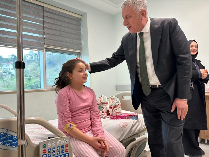 Of Belediye Başkanı Salim Salih Sarıalioğlu, ilçede tedavi gören vatandaşları ziyaret ederek moral vermeye devam ediyor. Bu kapsamda Of Devlet Hastanesi’ne giden Başkan Sarıalioğlu ve AK Parti Of İlçe Başkanı Osman Baykal, çocuk servisinde tedavi gören minik hastalar ve aileleriyle bir araya geldi.