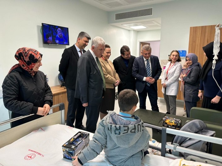 Ziyaret sırasında çocuklarla yakından ilgilenen Başkan Sarıalioğlu, hasta yakınlarıyla sohbet ederek geçmiş olsun dileklerini iletti ve tedavi süreci hakkında bilgi aldı.