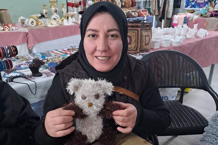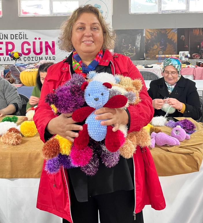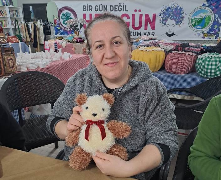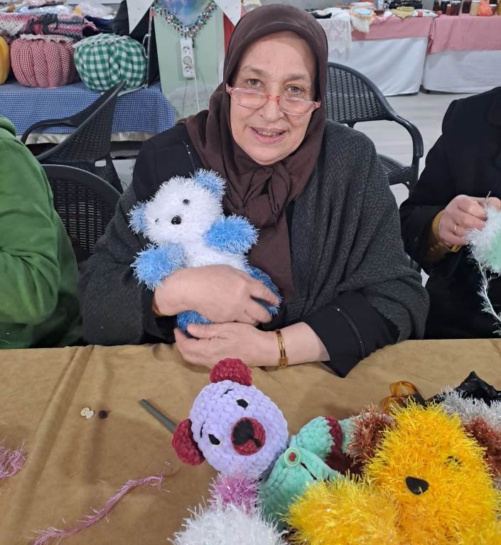 Samimi ve içten bir ortamda örülen ayıcıklar, bayramda hastanede tedavi gören çocuklara hediye edilmek üzere hazırlandı.