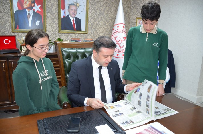 Türkiye Yüzyılı Maarif Modeli doğrultusunda hazırlanan gazetemiz; erdem, değer, üretkenlik ve çağın gerektirdiği becerilerle donatılmış bireyler yetiştirme vizyonumuzun somut bir göstergesidir. ARYO Maarif Gazetesi ile okulumuzda yürütülen nitelikli eğitim çalışmalarını, öğrencilerimizin azmini ve öğretmenlerimizin fedakârlığını tüm velilerimiz ve paydaşlarımızla gururla paylaşıyoruz. Bu anlamlı yayın, birlikte inşa ettiğimiz güçlü okul kültürünün en güzel aynasıdır’’ denildi. Derepazarı Ali Rıza Yılmaz Ortaokulu öğretmen ve öğrencileri tarafından dönemlik olarak hazırlanan “ARYO Maarif Gazetesi” Okul Müdürü Yekta Serdar Cebecioğlu ve öğrenciler tarafından İl Millî Eğitim Müdürü Halil İbrahim Akmeşe’ye takdim edildi.