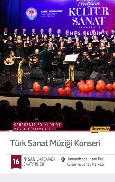 Trabzon Büyükşehir Belediye Başkanı Ahmet Metin Genç, “Baharın taze esintisiyle doğa yeniden uyanırken, bizler de sanatın ve kültürün coşkusunu hep birlikte yaşamanın heyecanını taşıyoruz. Belediyemizin sizler için hazırladığı kültür ve sanat etkinlikleriyle baharın güzelliklerini birlikte paylaşacak olmanın mutluluğunu yaşıyoruz. Bu ay birbirinden değerli sanatçıların konserleriyle müziğin büyüsüne kapılacak, sahnelenen tiyatro oyunlarıyla kimi zaman gülecek, kimi zaman derin duygular yaşayacağız. Usta isimlerle gerçekleştireceğimiz söyleşilerde ise yeni bakış açıları kazanarak keyifli bir düşünsel yolculuğa çıkacağız. Tüm etkinlikleri, şehrimizin her köşesinden, her yaştan hemşehrimizin kültür ve sanatla buluşmasını sağlamak amacıyla özenle hazırladık. Sanatın birleştirici ve iyileştirici gücünü hissediyor, kültür ve sanatla iç içe geçen zamanın toplumumuzu daha da güçlendireceğine gönülden inanıyoruz. Bütün vatandaşlarımızı etkinliklerimizde aramızda görmekten büyük mutluluk duyacağız” dedi.