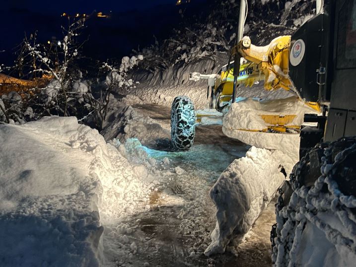 Trabzon Büyükşehir Belediyesi ekipleri, şehir genelinde etkili olan kar yağışına karşı mücadelesini aralıksız sürdürüyor. İlçe belediyeleriyle koordineli olarak yürütülen çalışmalar kapsamında kapalı olan 25 mahalle yolunu açmak için ekipler yoğun çaba harcıyor. Tüm yolların, gün içerisinde ulaşıma açılması hedefleniyor. Ayrıca yeni kar yağışına karşı hazır kıta sahada bulunan Trabzon Büyükşehir Belediyesi ekipleri, don ve buzlanma riskine karşı tuzlama ve temizleme çalışmalarına devam ediyor.