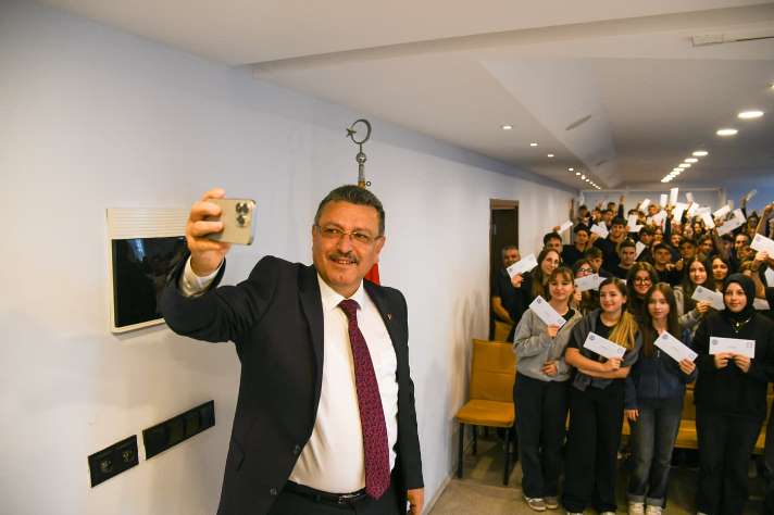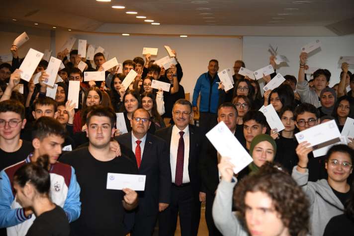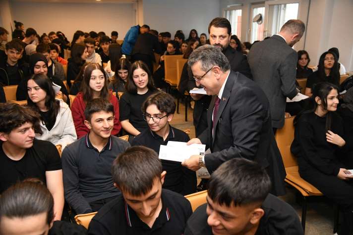 Gazi Anadolu Lisesi’ndeki 170 öğrenciye eğitim setlerini veren Büyükşehir Belediye Başkanı Ahmet Metin Genç, eğitime katkılarının süreceğini söyledi.
