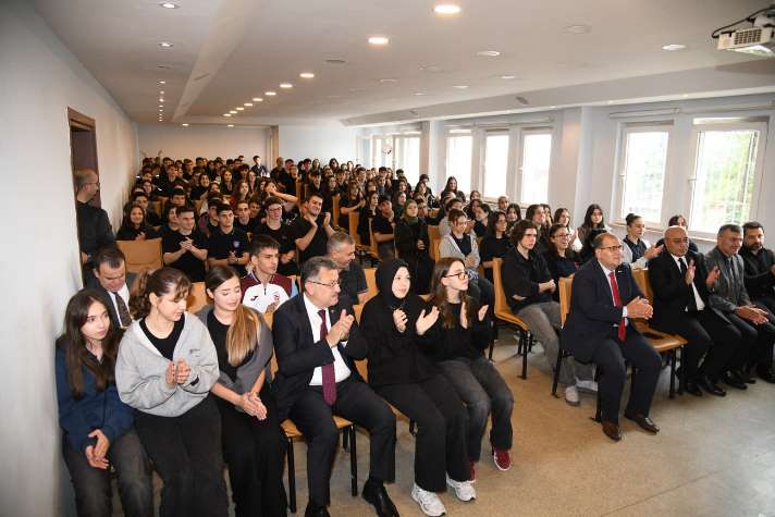 Başkan Genç, sözlerini şöyle sürdürdü: “Şu anda Avrupa’nın nüfusunun çok yaşlandığını gördüğümüzde, özellikle toplumun, milletin, devletin üreterek ileriye gitmesinin zorunlu olduğu bir dönemde, çağla uyumlu bir şekilde nitelikli, kaliteli bir gençliğimizin olması bizim en büyük gücümüz. Cumhuriyetimizin kurucusu Mustafa Kemal Atatürk, tam bağımsız Türkiye idealiyle, hedefiyle ülkemizi kurmuşsa, bütün konularda tam bağımsız olabilmek için bu gençliğin daha hızlı bir şekilde bilgiye erişimiyle yeni şeyler üretmesi lazım. O nedenle sizlerden hakikaten çok büyük bir beklenti içerisindeyiz. Şu anda sizin bir önünüzdeki jenerasyonda ülkemizin gelişmesi için, kalkınması için çokça şeyler ürettiler. Şehrimizin evladı; İHA’ların, SİHA’ların mucidi olan Selçuk Bayraktar Bey’in İstanbul’da fabrikalarını ziyaret ettiğimde, sadece bir yerleşkede 3 bin 500 genç mühendisin olduğunu gördüm. Milli duygularımız kabardı. Bu süreci siz yöneteceksiniz, siz inşa edeceksiniz. Çünkü biz sıradan bir millet, bir devlet, bir kara toprak parçasını işgal eden bir ülke değiliz. Biz daha önce yeryüzünde medeniyet kurmuş, bütün insanlara ve insanlığa hizmet etmiş bir medeniyetin mirasçılarıyız. Şu anda aynı sizin gibi gençler, Filistin’de de okuyabilmeli idi. Ama maalesef şu anda onlar inim inim inliyorlar hala. Soykırım yapan, güce erişip güçlü olan ama gücü insanlığın hayrına değil, zararına kullanan katil İsrail ve onu destekleyen Amerika yüzünden.”