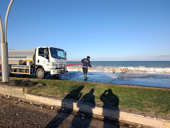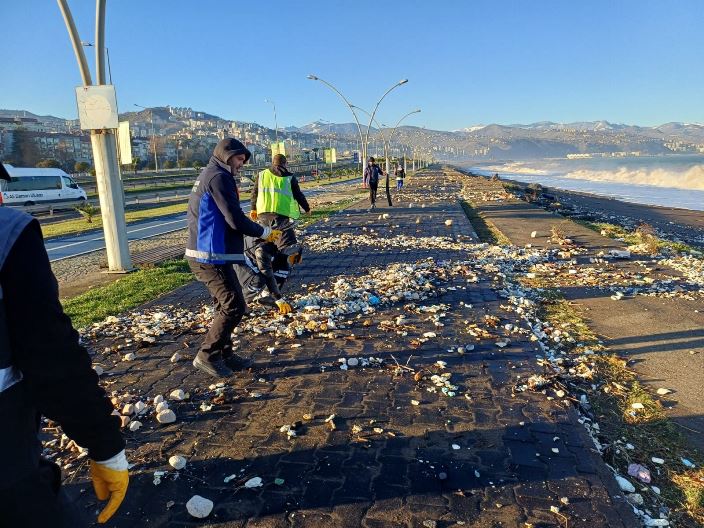 Trabzon Büyükşehir Belediyesi, kentte etkili olan şiddetli fırtınanın ardından Ayasofya sahilinde oluşan olumsuzluklara hızlı ve koordineli bir şekilde müdahale etti. Yoğun dalgaların etkisiyle denizin taşması sonucu Ayasofya sahil yolunda çeşitli atıklar ve birikintiler meydana geldi. Trabzon Büyükşehir Belediyesi Çevre Koruma ve Kontrol Dairesi Başkanlığı ekipleri, sabahın erken saatlerinde yıkama, süpürge ve mıntıka ekipleriyle birlikte kapsamlı bir temizlik çalışması başlattı. Ekiplerin özverili ve koordineli çalışmasıyla sahil yolunda oluşan atıklar kısa sürede temizlenerek yol güvenliği sağlandı. Yapılan çalışmaların ardından Ayasofya sahil yolu yeniden ulaşıma açılarak vatandaşların hizmetine sunuldu.