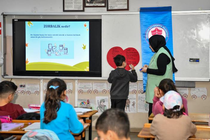 Trabzon Büyükşehir Belediyesi ile Ortahisar İlçe Milli Eğitim Müdürlüğü arasında imzalanan protokol kapsamında okullarda akran zorbalığına karşı farkındalık eğitimleri düzenleniyor. Bu doğrultuda, Büyükşehir Belediyesi Sosyal Hizmetler Dairesi Başkanlığı’na bağlı Kadın ve Aile Hizmetleri Şube Müdürlüğü tarafından, 100. Yıl İlkokulu ve Ata İlkokulu’nda 3. ve 4. sınıf, Kanuni Ortaokulu’nda ise 5., 6., 7. ve 8. sınıf öğrencilerine eğitim verildi. Eğitimlere katılan Büyükşehir Belediyesi Genel Sekreter Yardımcısı Hasan Selim, öğrencilere akran zorbalığına karşı bilgilendirici broşür ve çeşitli hediyeler takdim etti. Eğitimler, ilkokul 3. ve 4. sınıfların yanı sıra ortaokul ve liselerde de devam edecek. Büyükşehir Belediyesi’nden yapılan açıklamada, “Eğitimin amacı, çağımızın sorunu olan akran zorbalığına karşı öğrencilerimizin duyarlı olmalarını sağlamak, sağlıklı iletişim kurmalarını desteklemek ve empati duygusunu geliştirmektir. Hep birlikte daha güvenli ve saygılı bir okul ortamı yaratma yolunda önemli adımlar attık. Unutmayalım ki hep birlikte “Zorbalığa Hayır” diyerek daha güçlü bir toplum inşa edebiliriz” denildi.