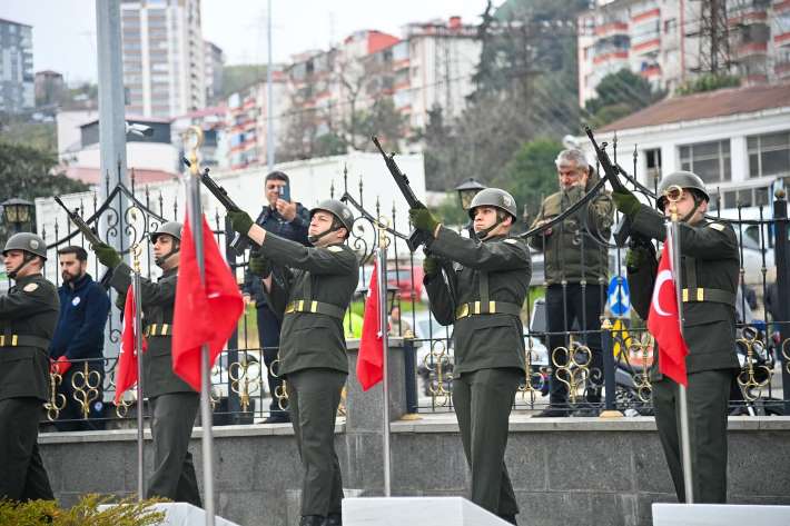 Trabzon’da 18 Mart Şehitleri Anma Günü ve Çanakkale Deniz Zaferi’nin 111. yıl dönümü nedeniyle tören düzenlendi. 15 Temmuz Şehitleri ve Hürriyet Parkı’nda gerçekleştirilen törene Trabzon Valisi Tahir Şahin, Büyükşehir Belediye Başkanı Ahmet Metin Genç, il protokolü ve çok sayıda vatandaş katıldı. Tören, Atatürk Anıtı’na çelenk sunulmasıyla başladı. Saygı duruşunun ardından Trabzon Büyükşehir Belediyesi Bando Takımı eşliğinde İstiklal Marşı okundu. Daha sonra Sülüklü Mezarlığı’ndaki şehitliği ziyaret eden protokol üyeleri, şehit mezarlarına karanfiller bırakıp Kur’an-ı Kerim tilavetiyle birlikte şehitleri dualarla yad etti. Anma programı, Hamamizade İhsan Bey Kültür ve Sanat Merkezi’nde düzenlenen etkinliklerle sürdü.