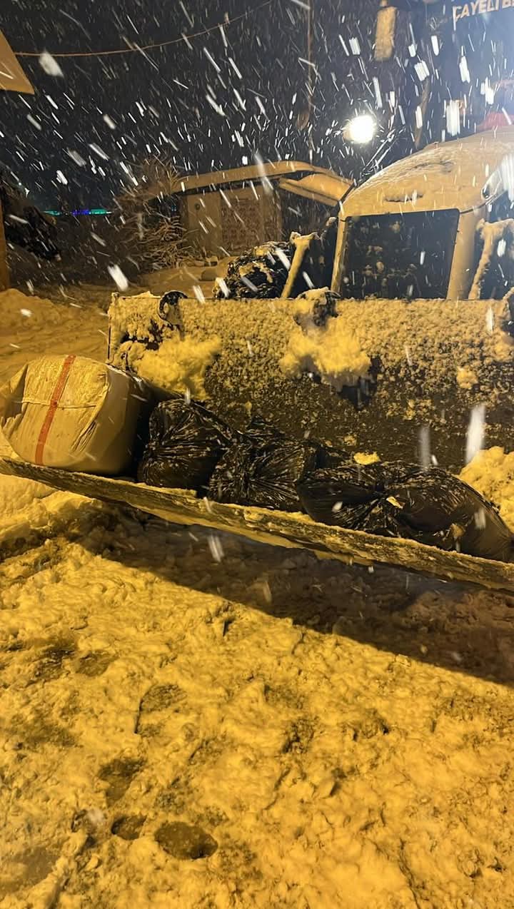 Yoğun kar yağısı yasandığı Rize’nin ilçesi Çayeli’de  Vatandaşların hayvanları için temin ettiği erzak ve otları yol açma çalışması yapan iş makinaları evlerine kadar ulaştırdı.
