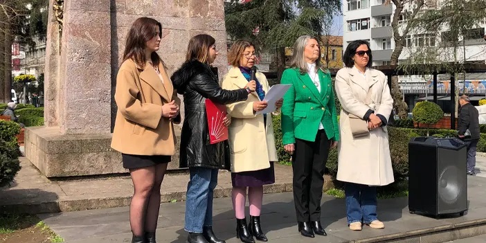 CHP Trabzon 8 Mart Dünya Emekçi Kadınlar Günü dolayısıyla meydan parkı, Atatürk Anıtı altında bir araya geldi.